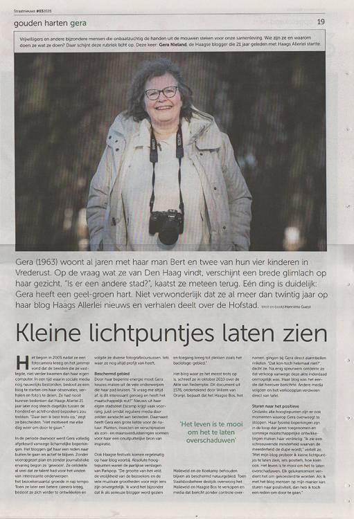 Het begon in 2005 nadat ze een fotocamera kreeg en het jammer vond dat de beelden die ze vastlegde, niet verder kwamen dan haar eigen computer. In een tijd waarin sociale media nog nauwelijks bestonden, besloot ze een blog te starten om haar observaties, verhalen en foto’s te delen. Ze had nooit kunnen bedenken dat Haags Allerlei 21 jaar later nog steeds dagelijks tussen de honderd en achthonderd bezoekers zou trekken. “Daar ben ik best trots op,” zegt ze bescheiden. “Het motiveert me elke dag weer om door te gaan.”