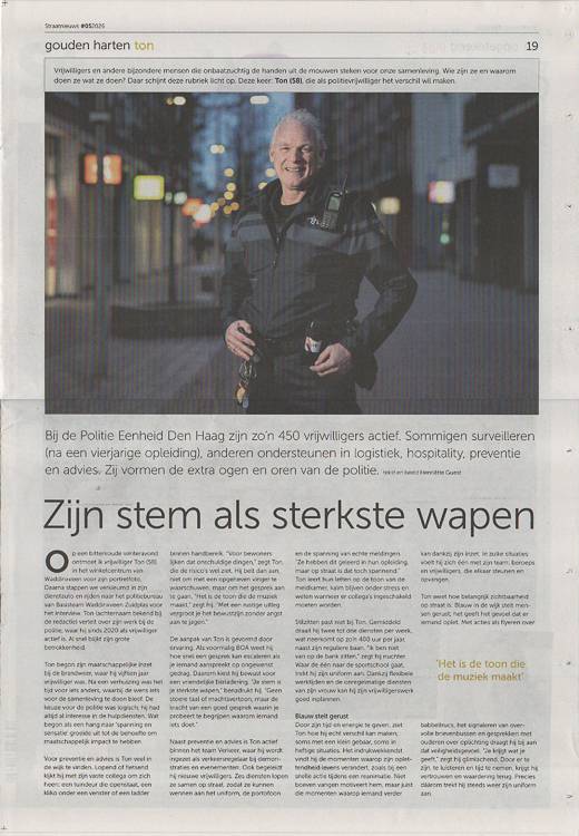 Ton weet hoe belangrijk zichtbaarheid op straat is. Blauw in de wijk stelt mensen gerust; het geeft het gevoel dat er iemand oplet. Met acties als flyeren over babbeltrucs, het signaleren van overvolle brievenbussen en gesprekken met ouderen over oplichting draagt hij bij aan dat veiligheidsgevoel. “Je krijgt wat je geeft,” zegt hij glimlachend. Door er te zijn, te luisteren en tijd te nemen, krijgt hij vertrouwen en waardering terug. Precies dáárom trekt hij steeds weer zijn uniform aan.